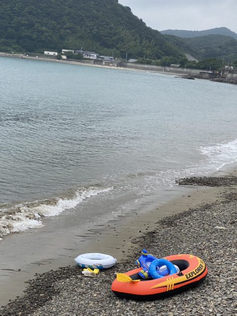 波打ち際にボートや浮き輪があるのって、なんだか夏の思い出という感じがしていいですね。